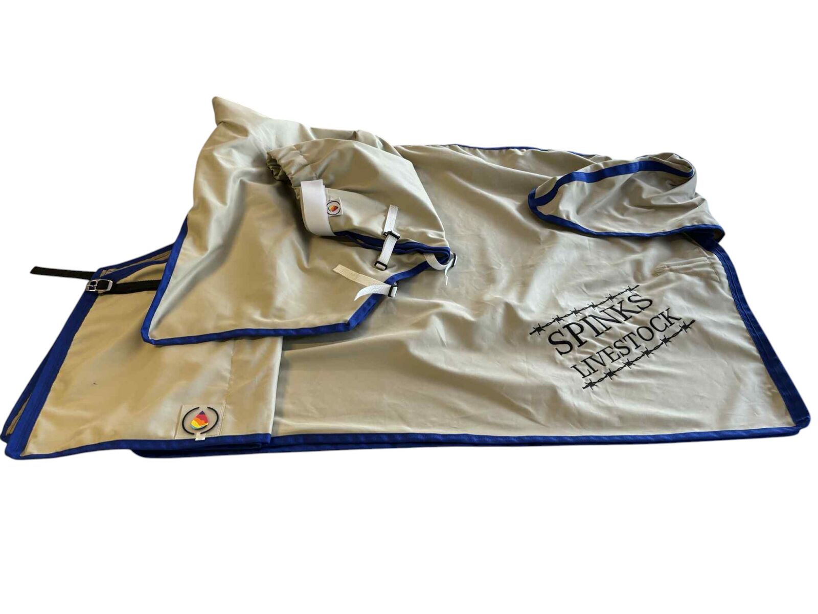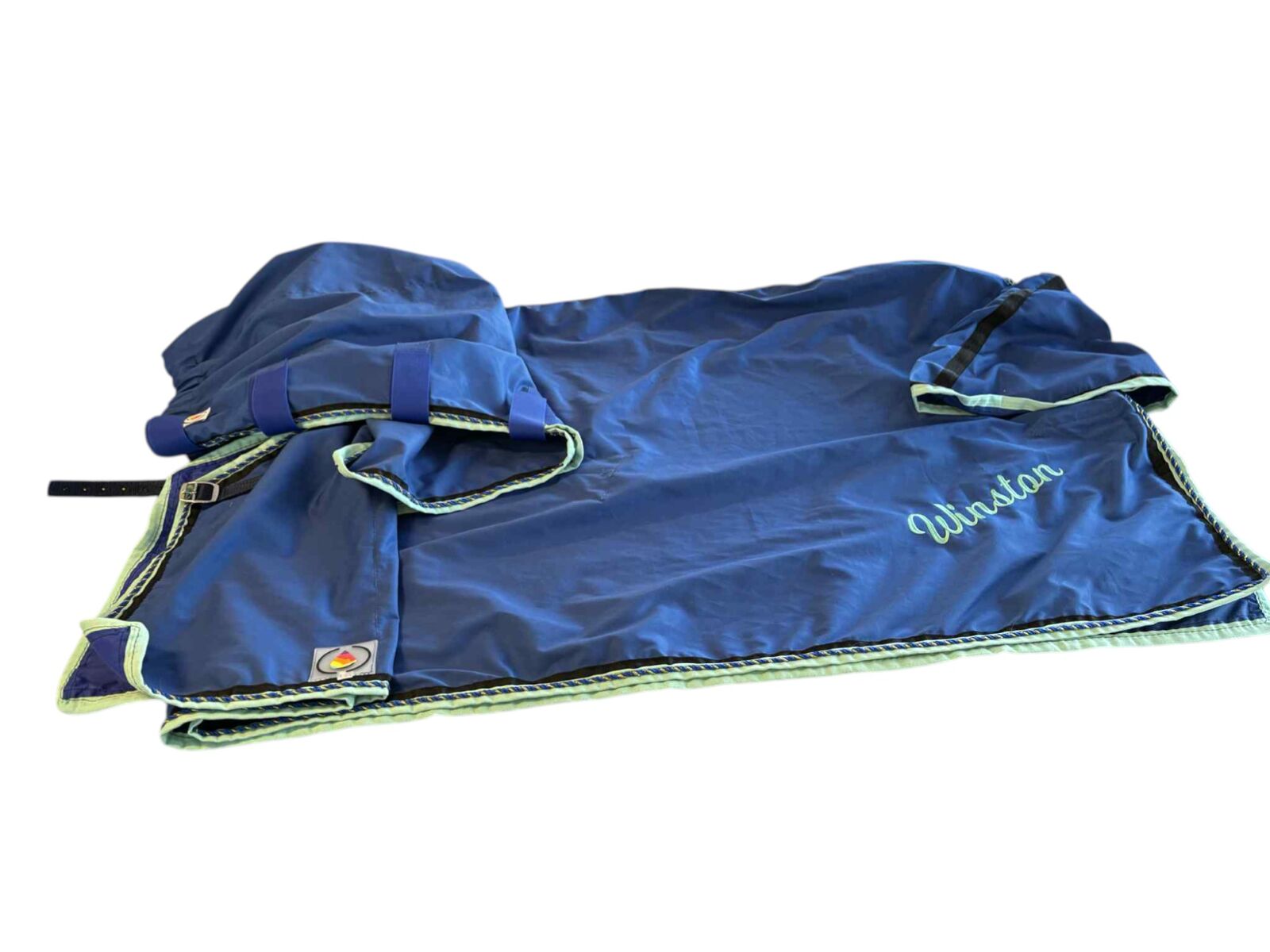 Rug will have steel double bar buckle on the front , leg straps with side release clips.  Tailguard and satin shoulders are standard.